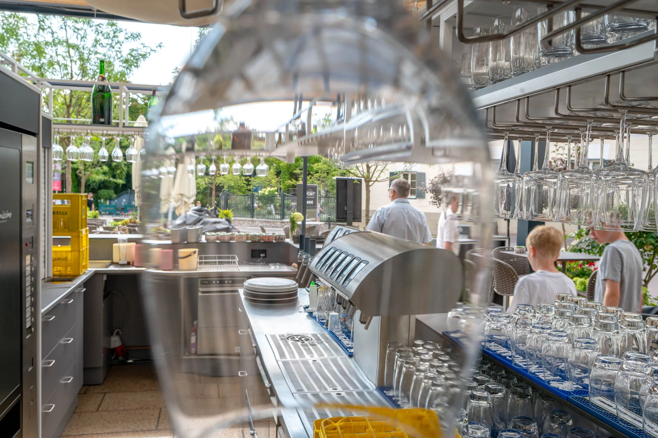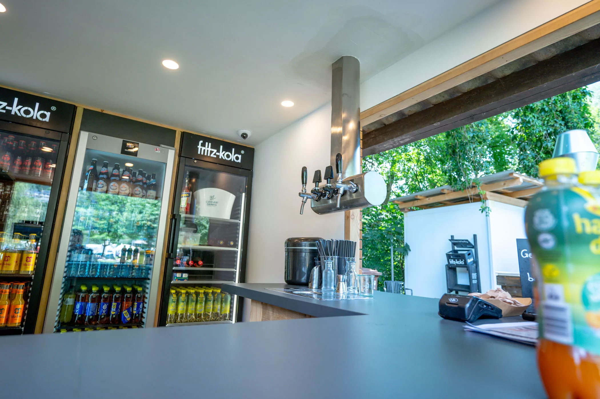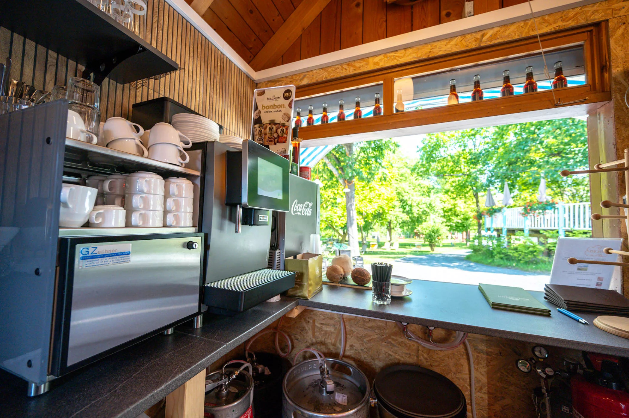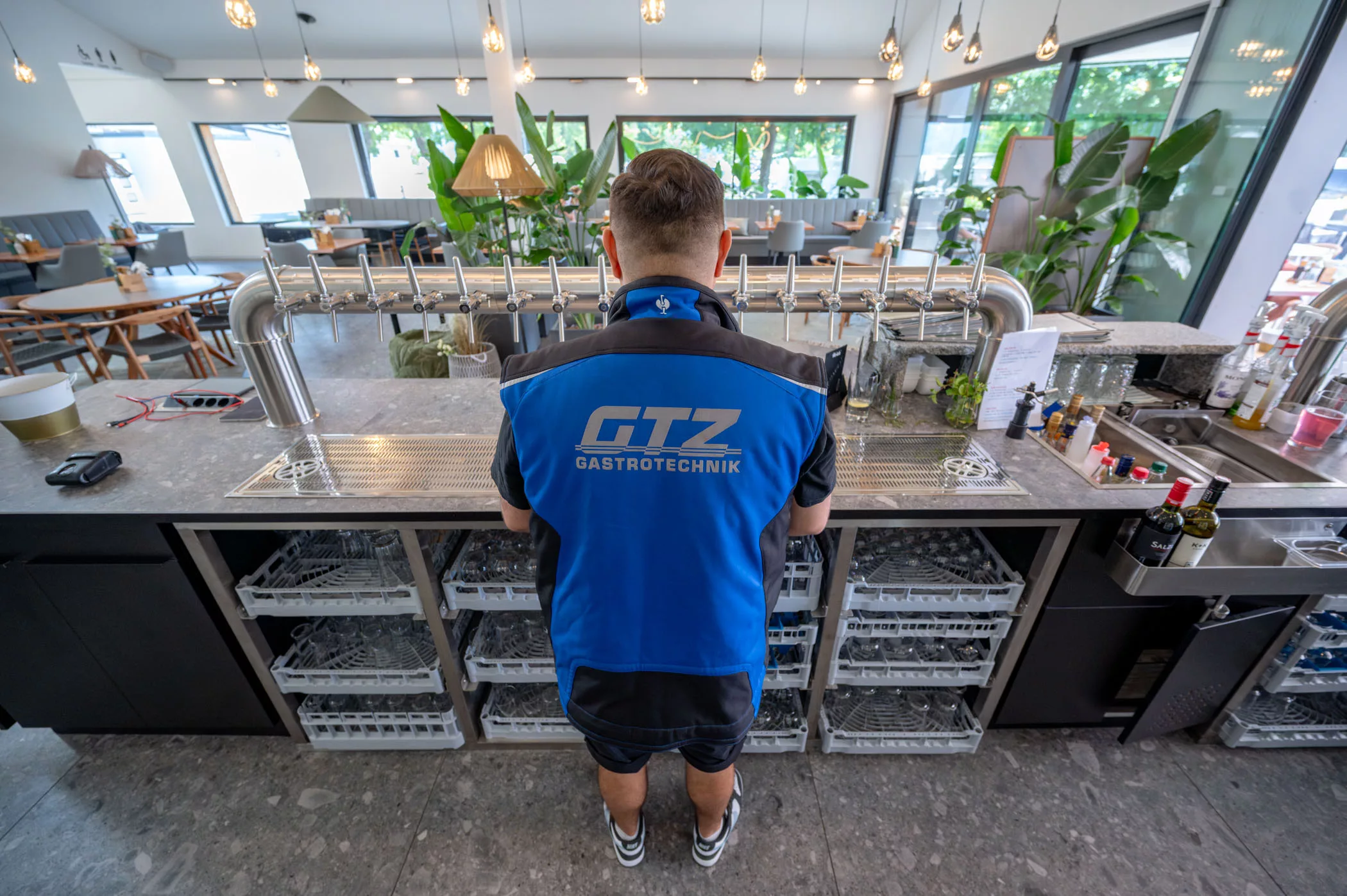 2 x Schankbalken (Küche) Bier, Alkoholfrei, Wein ● 1 x Schankbalken (Bar Caf ) Bier Alkoholfrei, Wein ● Anbindung All Bottel System (Albrecht) ● Anbindung Kaffeevollautomat WMF ● Gesamte Getränketechnik